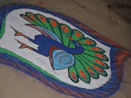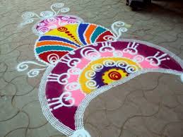 Rangoli is a popular art form among Indian women. Rangoli are painted on the ground in front of houses using colored rice powder -- sometimes supplemented by flower petals and other colorful materials. Rangoli are typically painted during the tamil month of Maarkazhi (between December 15th and January 15th).